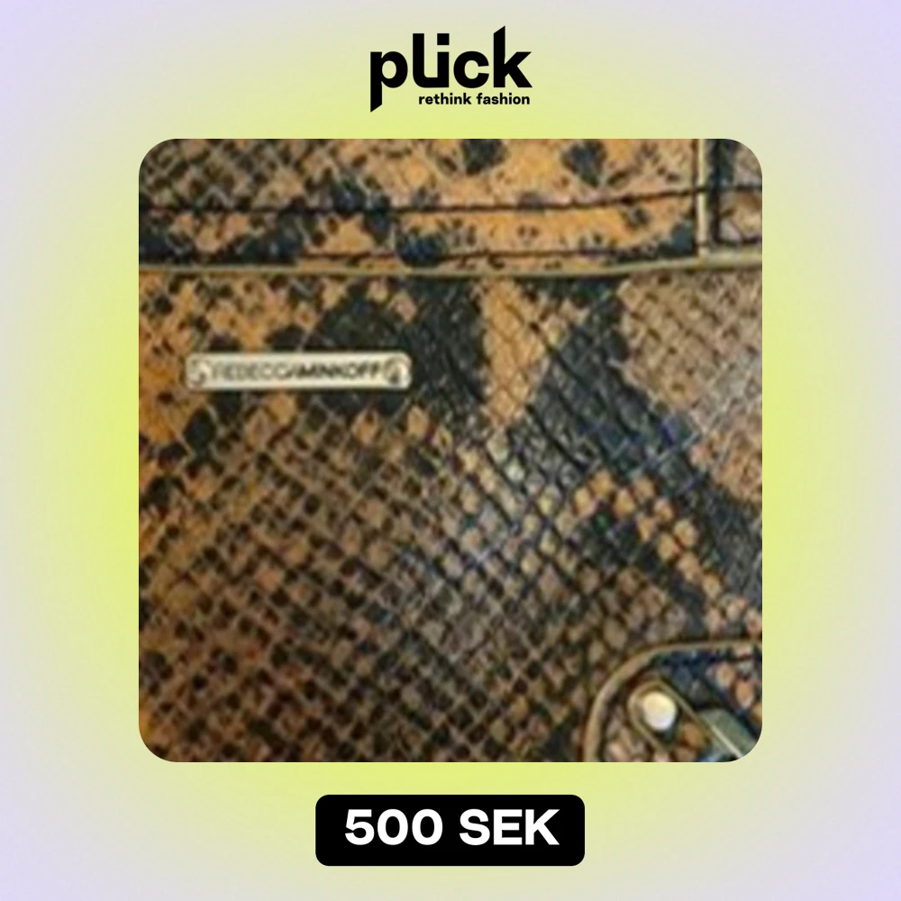 Bara fått vara i garderoben sista tiden då jag alltid köper på mig för många väskor. En liten RebeckaM axelremsväska som du får plats med plånbok, telefon mm. Den är superfin med ormskinnsmönster i orangea toner. Nitar av guld och blått mönster inuti