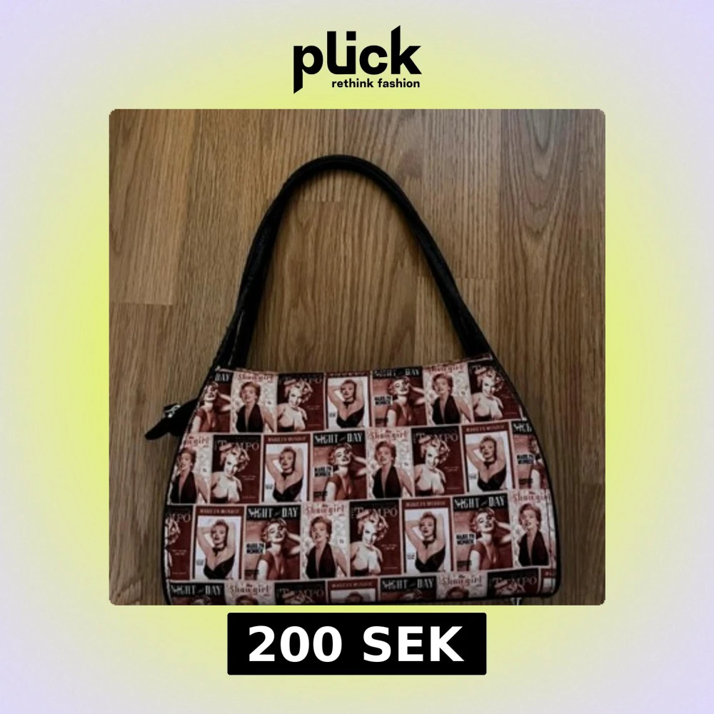Cool handväska med retroinspirerat Marilyn Monroe-tryck i bruna och beige toner. Väskan har svart handtag och detaljer, samt dragkedja upptill. Perfekt accessoar för dig som gillar vintagevibbar och unika prints.