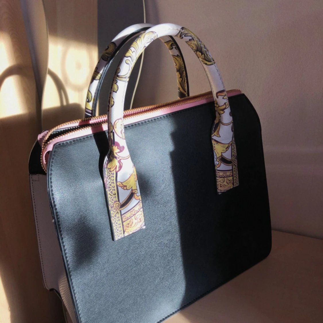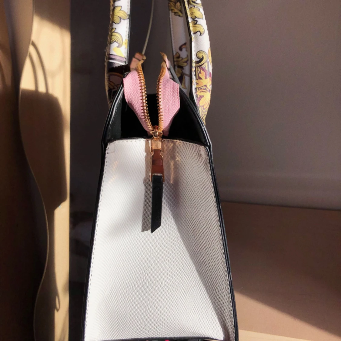 Aldrig använd väska från River Island, köpt i London. Läderimitation med detaljer i roséguld. Kommer med ett bredare axelband som går att fästa inuti väskan. Nypris låg på ca 500 kr.