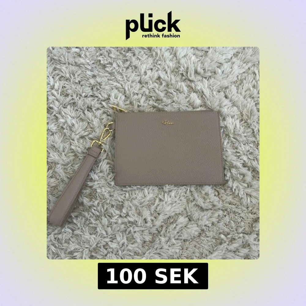 Snygg beige kuvertväska från Rizzo i äkta skinn med guldfärgade detaljer och dragkedja. Bra till plånbok eller handväska inte använd