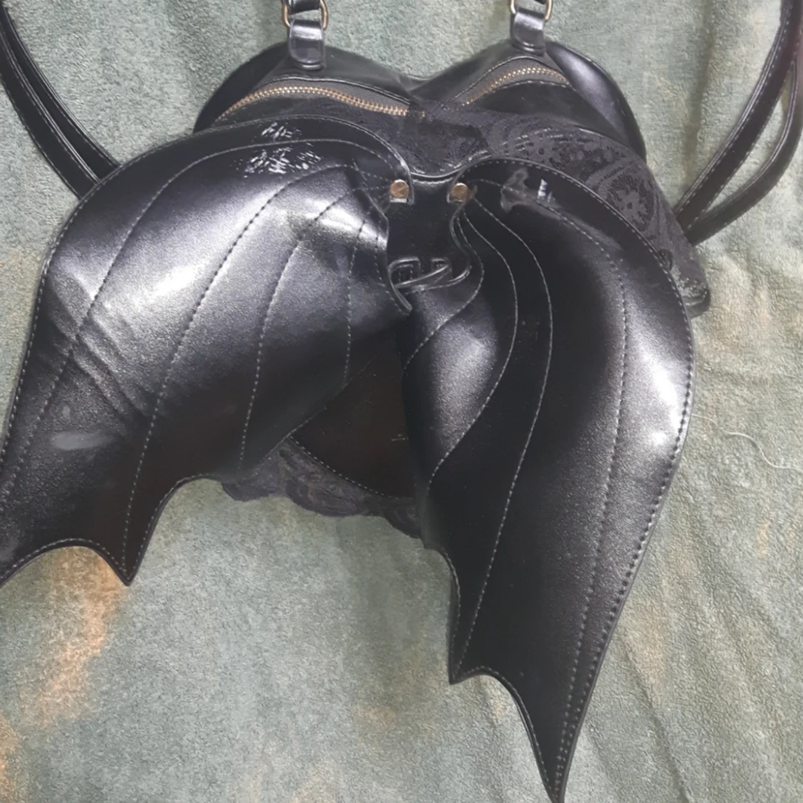 Lite sliten men söt väska med axelband som kan ställas in i storlek. Söta fladdermus vingar på ryggen. 🌙 Obs! Katt finns i hem 🙀 Kan hämtas upp i Malmö eller Hässleholm!