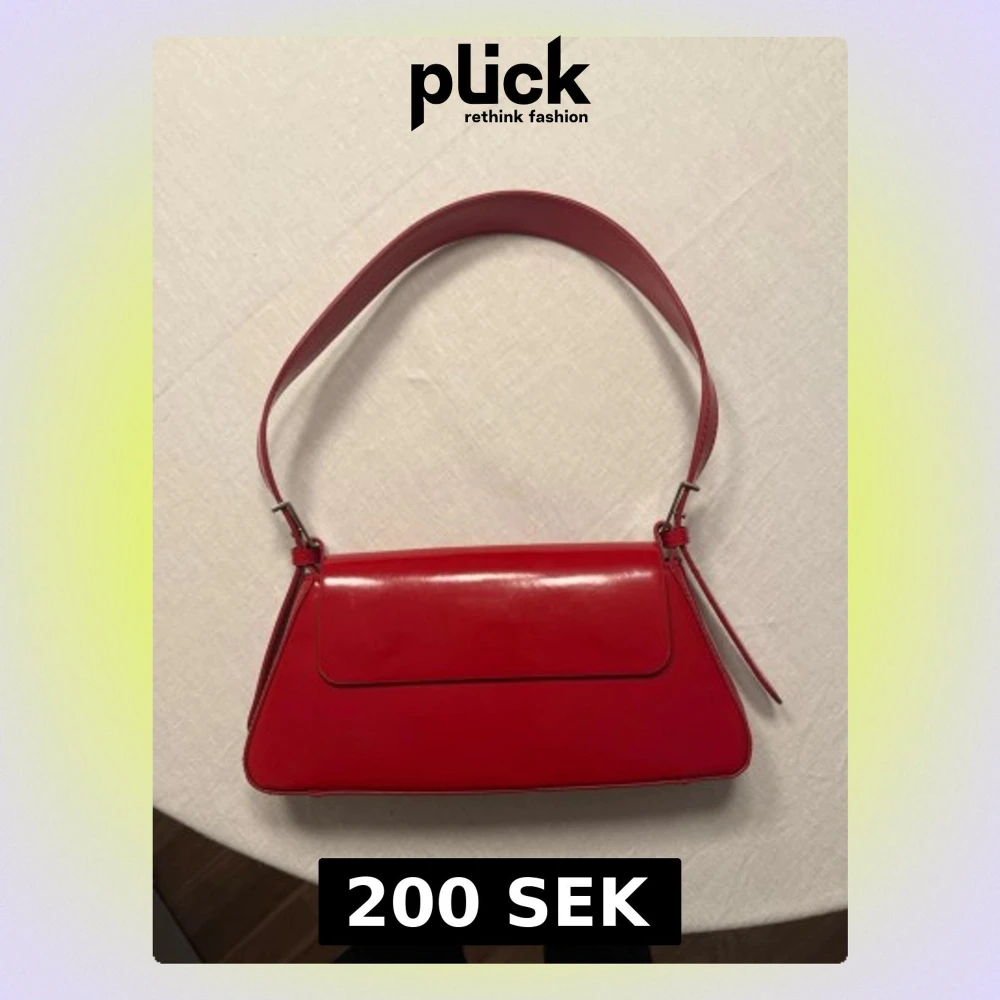 Snygg röd axelväska med stilren, rektangulär form och bred axelrem. Använd en gång så i princip som ny.