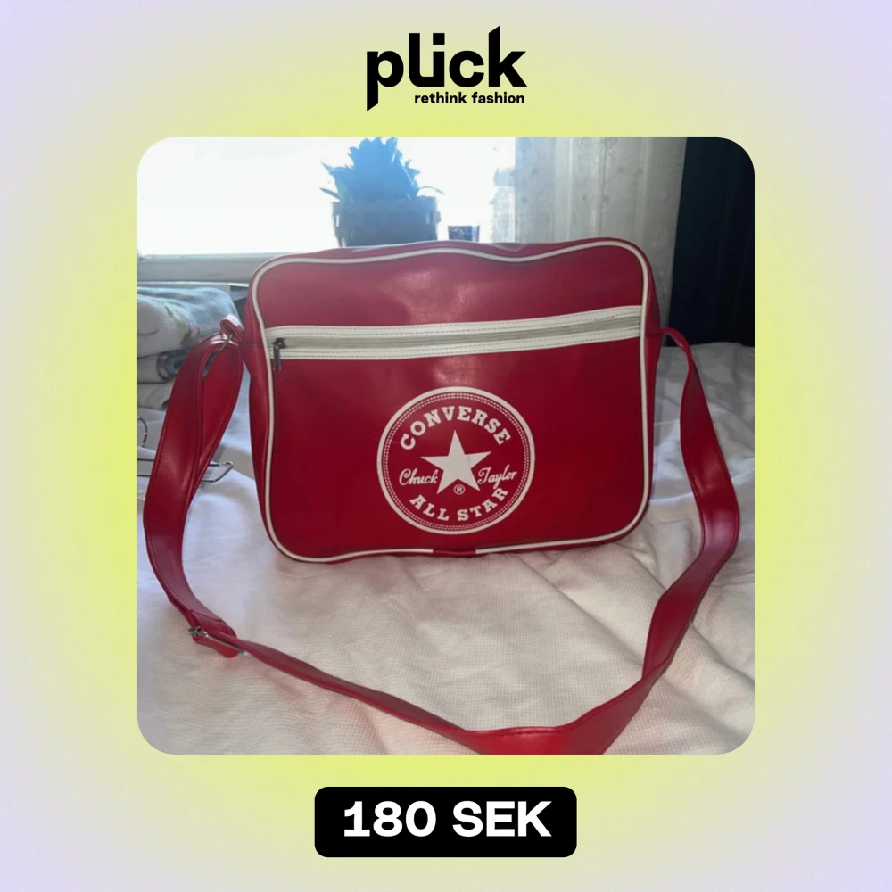 Säljer en snygg röd axelväska från Converse med det klassiska Chuck Taylor All Star-loggan i vitt. Väskan har en justerbar axelrem och en praktisk dragkedja framtill. Perfekt för vardagsbruk eller som en cool accessoar till din outfit. 👜✨Hej! Ungefär 32 cm bred o 24cm hög