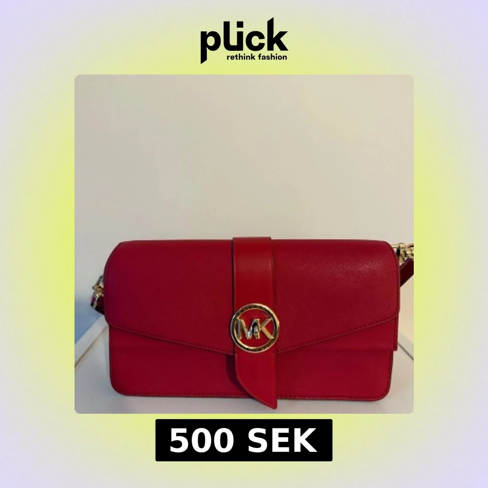 Snygg röd axelväska från Michael Kors med guldfärgad MK-logga framtill. Väskan har stilren design, justerbar axelrem och är tillverkad i skinn med struktur. Perfekt för dig som vill ha en statementväska med lyxig känsla och cool detalj.