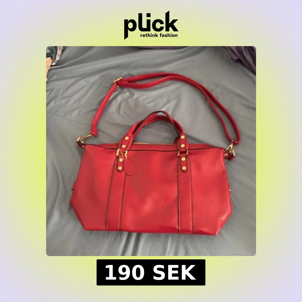 Snygg röd axelväska med både handtag och justerbar axelrem. Väskan har guldfärgade metalldetaljer och dragkedja upptill. Invändigt finns flera fack för småsaker. Perfekt för dig som vill ha en stilren och rymlig väska.
