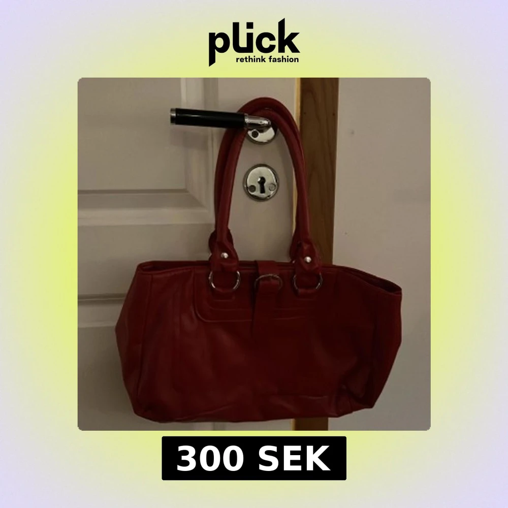 Säljer en snygg röd axelväska med dubbla handtag och silverfärgade metalldetaljer. Väskan har en klassisk rektangulär form och är tillverkad i syntetmaterial. Perfekt för dig som vill ha en färgklick till din outfit!