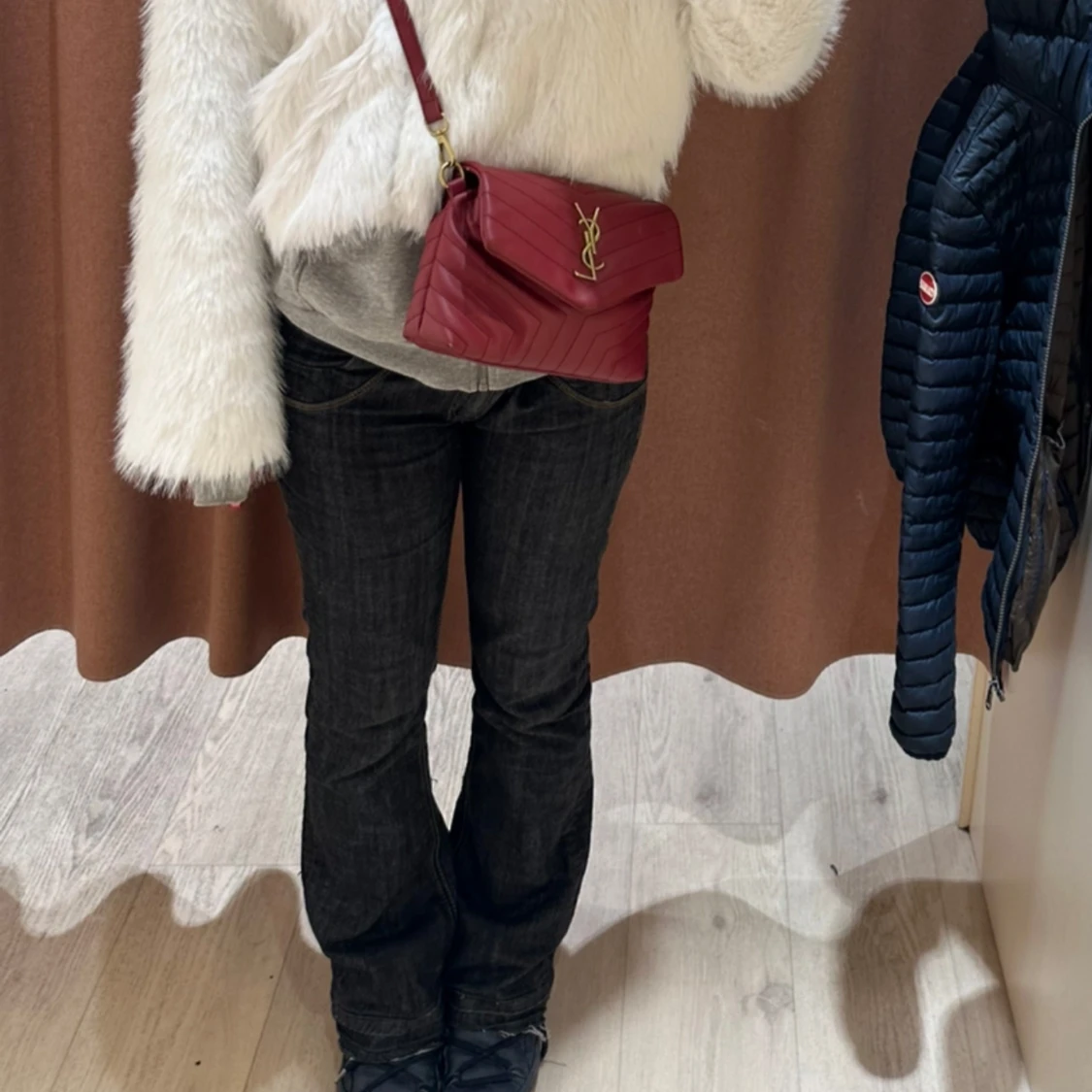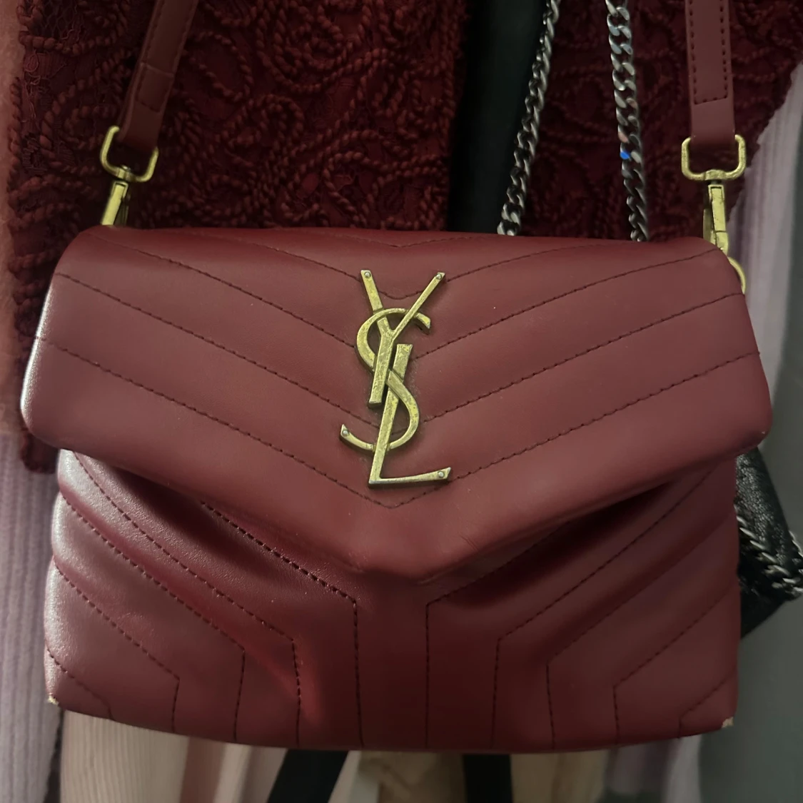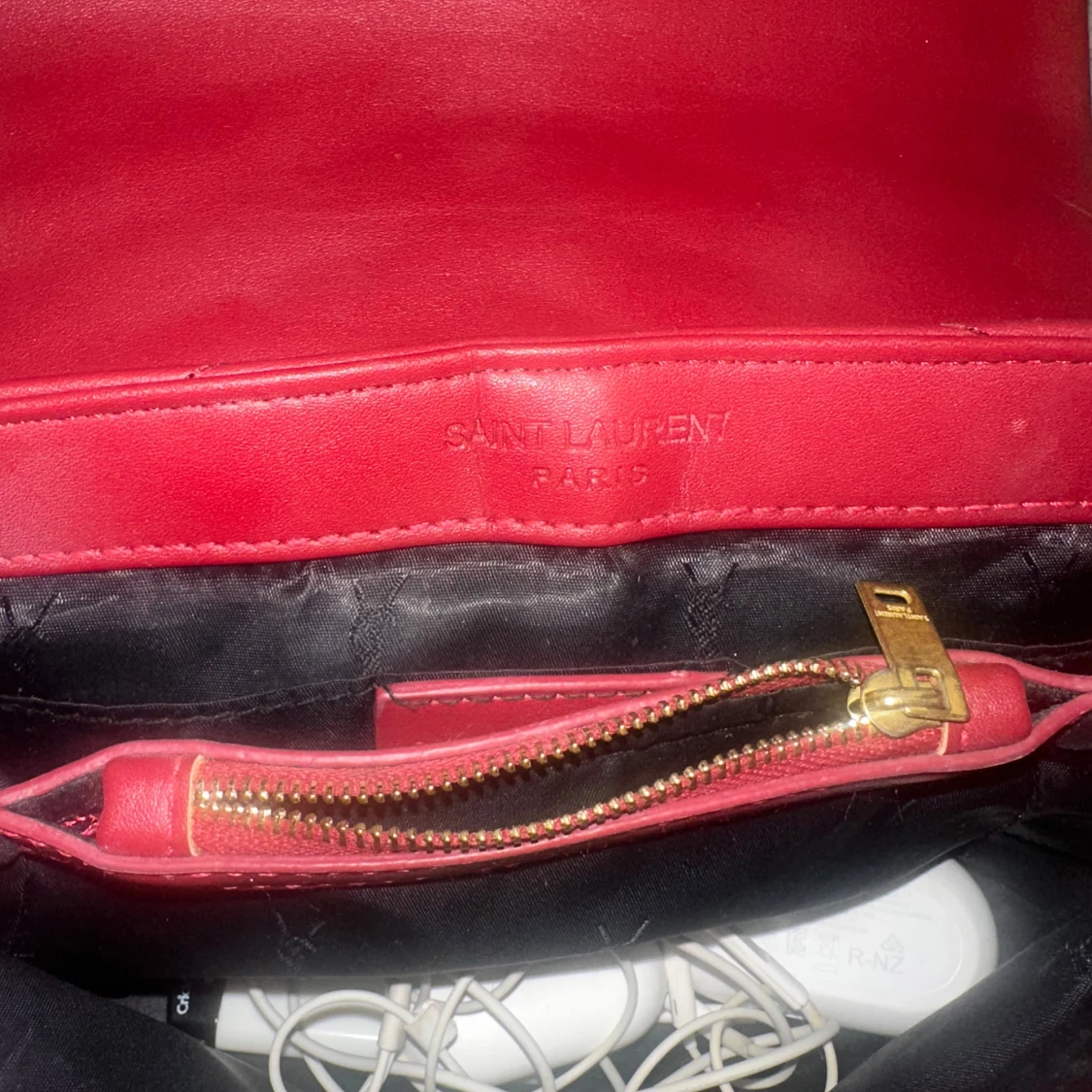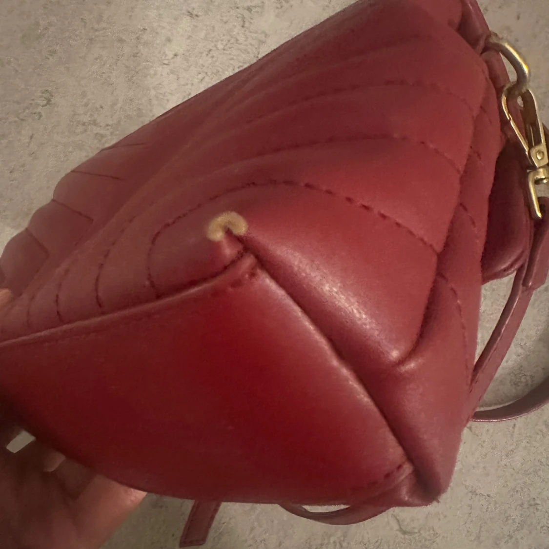Röd axelväska köpte för 4000 för ca två år sen på Plick vet inte om den är äkta, tveksamt men fof så snygg