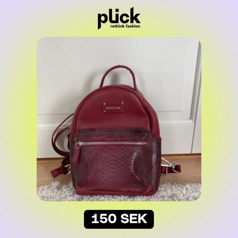 En röd liten ryggsäck i fakeläder. Den är endast använd en gång. Säljer för 150kr exklusive frakt