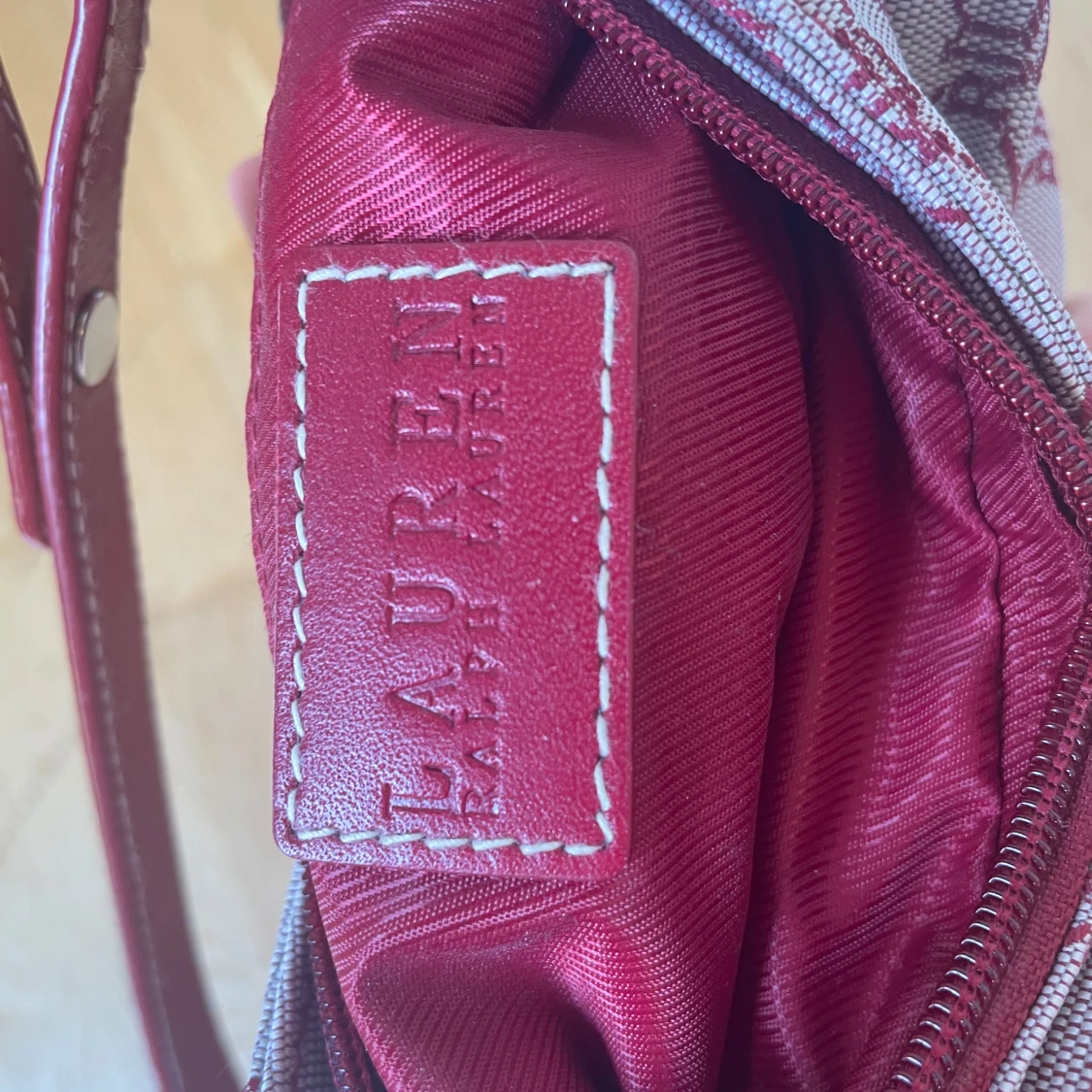 Säljer en snygg axelväska från Lauren Ralph Lauren i rött och vitt med mönster och matchande röd axelrem. Väskan har dragkedja upptill och logotypmönster över hela ytan. Perfekt accessoar för att lyfta din outfit!
