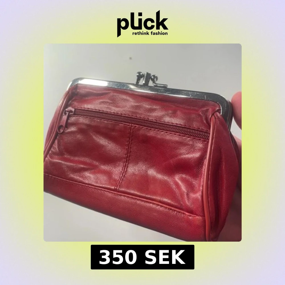 Snygg röd plånbok i skinn med en praktisk dragkedja på framsidan. Den har en klassisk metallram och ett rymligt fack inuti. Perfekt för att hålla ordning på dina kort och kontanter. Riktig läder