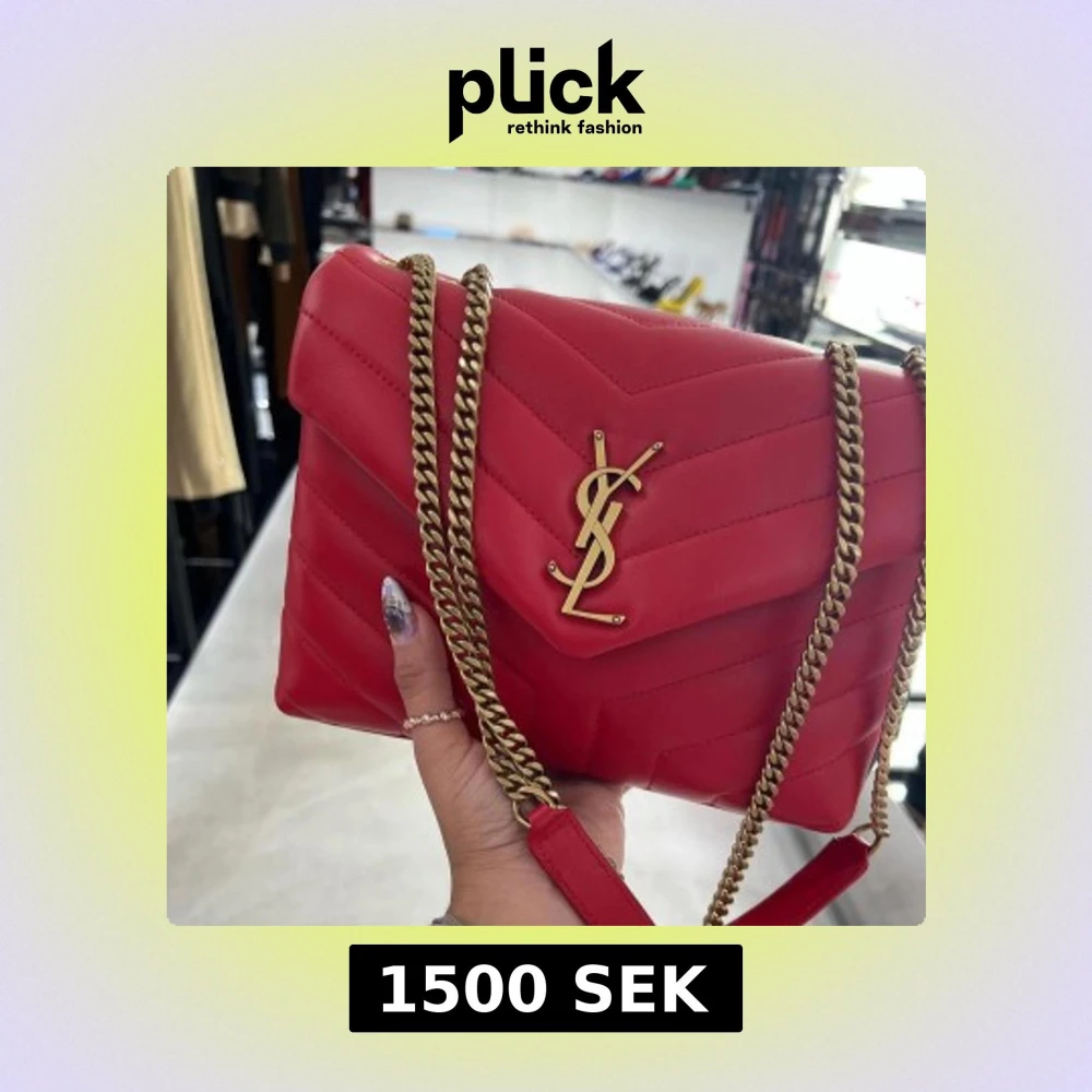 Säljer en snygg röd axelväska från YSL med guldiga kedjor och ikonisk YSL-logga framtill. Väskan är quiltad i skinn och har ett stilrent, lyxigt uttryck. Modell- SAINT LAURENT LOULOU SMALL FLAP BAG OPYUM RED/GOLD . Osäker på om den är äkta , men garanterat äkta läder