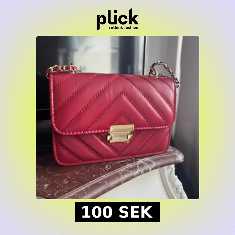 Snygg röd axelväska med quiltad design och guldfärgad kedjerem. Väskan har ett elegant spänne framtill och är perfekt för att lyfta vilken outfit som helst. Tillverkad i skinnimitation med trendiga detaljer.