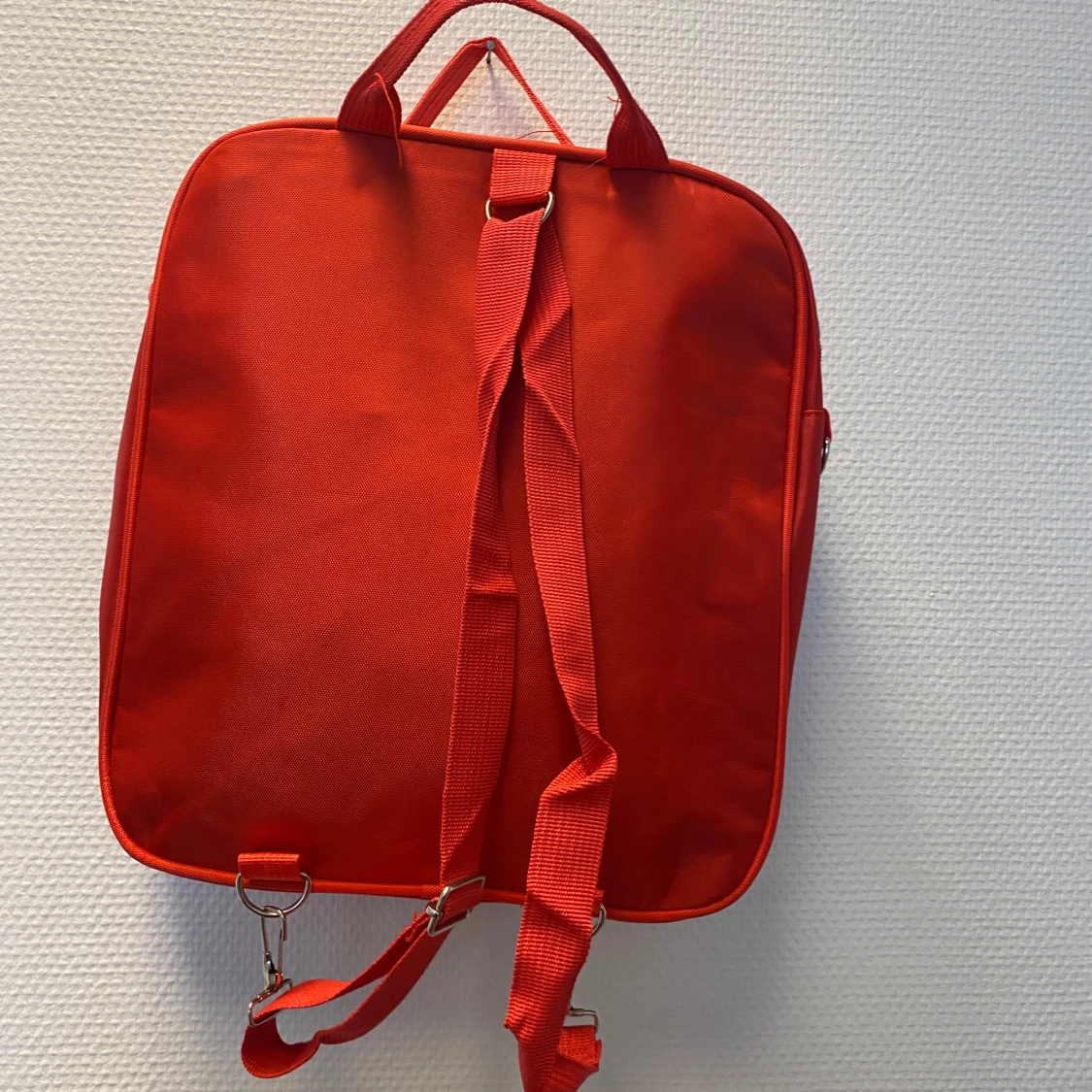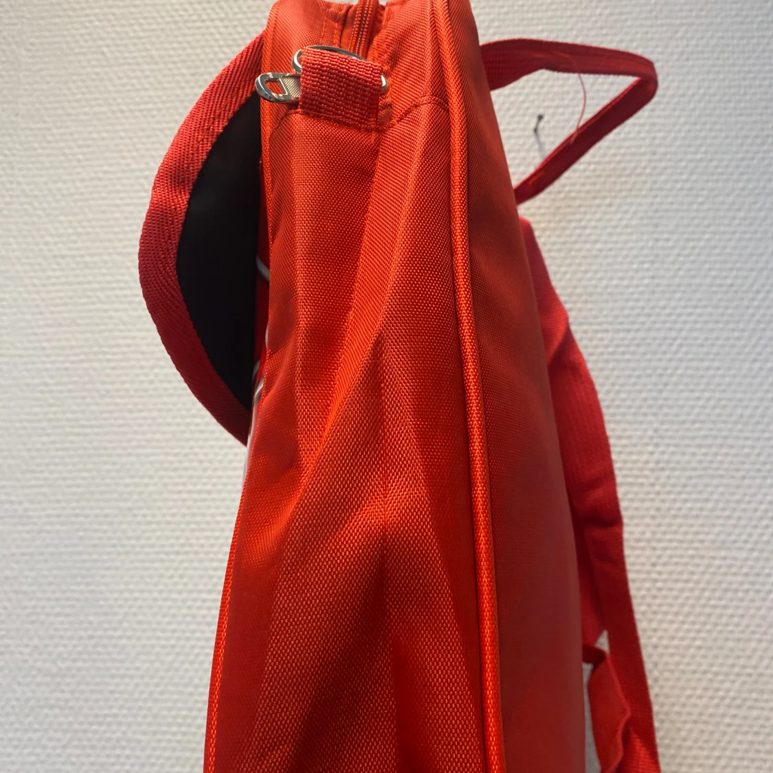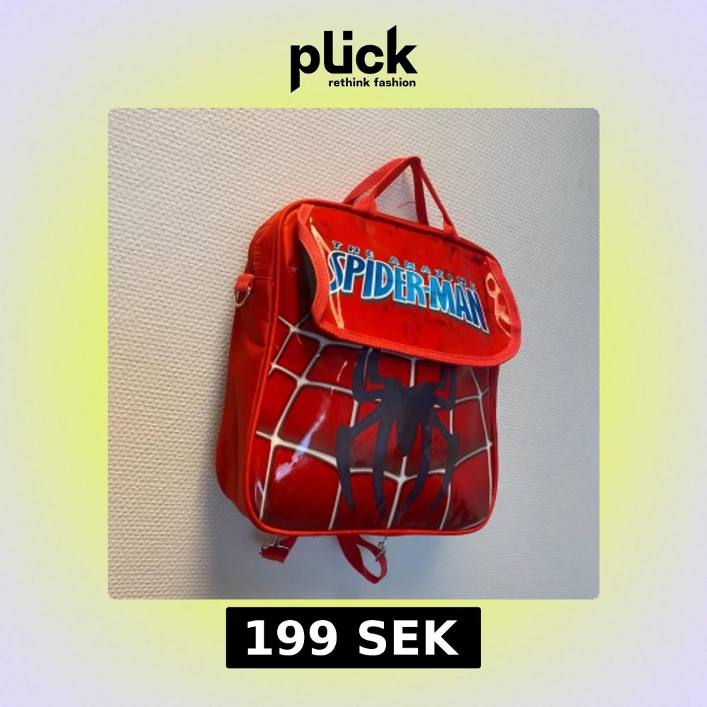 Cool röd ryggsäck med Spider-Man-tryck och spindelnätsmönster framtill. Ryggsäcken har justerbara axelremmar, bärhandtag och ett stort fack. Materialet är slitstark polyester och framsidan har en glansig finish med svart spindelmotiv. Helt ny