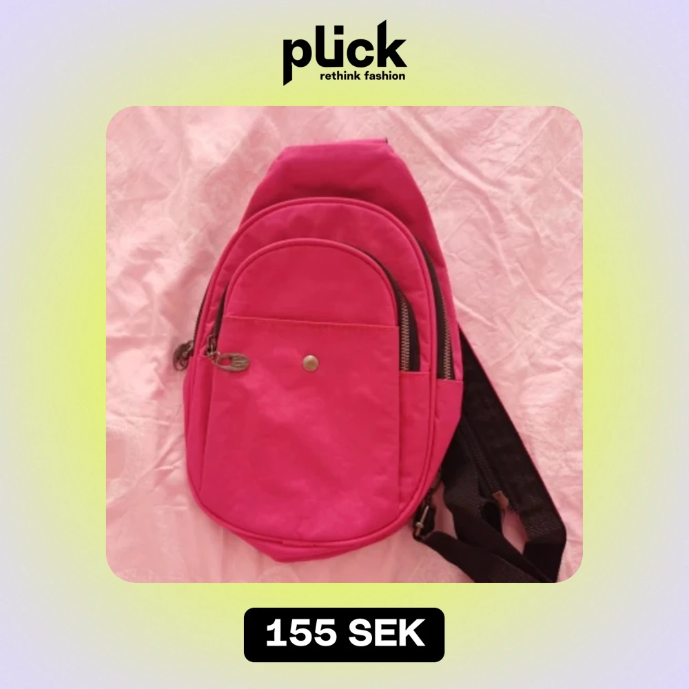 En praktisk och stilren rosa axelväska med flera fack och dragkedjor. Väskan har en justerbar svart axelrem och en knappdetalj på framsidan.