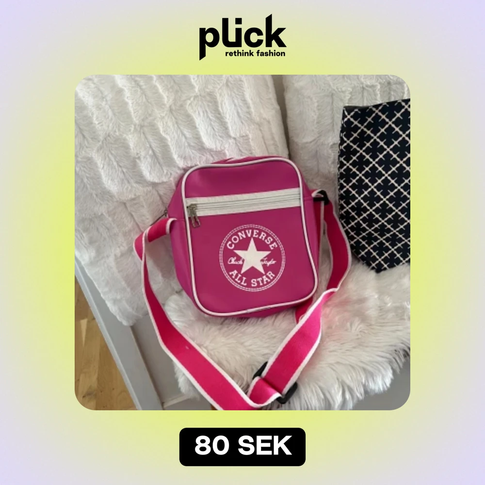 Säljer en supercool rosa axelväska från Converse med det klassiska All Star-märket på framsidan. Väskan har en justerbar axelrem i rosa och vitt, och en praktisk dragkedja upptill. Perfekt för vardagsbruk eller när du vill lägga till en färgklick till din outfit!