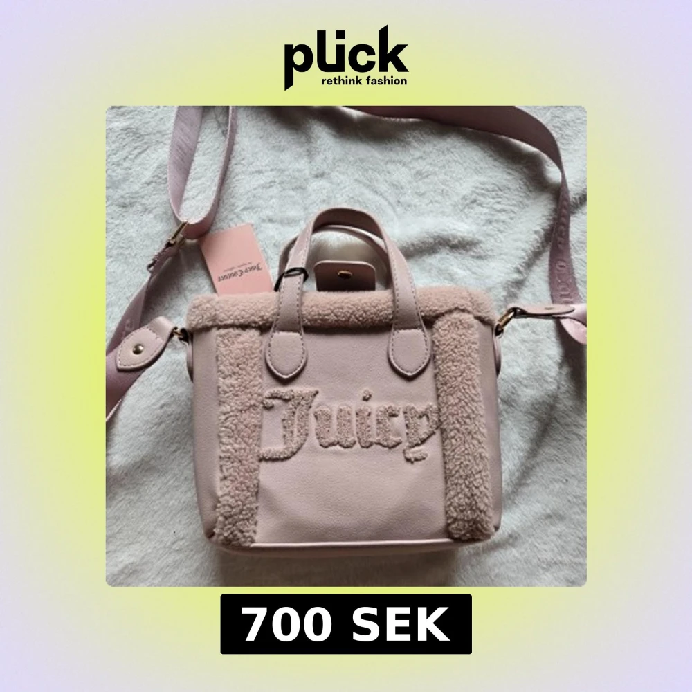 Supersöt ljusrosa axelväska från Juicy Couture med fluffiga teddy-detaljer och broderad logga framtill. Väskan har både handtag och justerbar axelrem, perfekt för att bära crossbody. Materialet är en mix av syntet och teddy, vilket ger en trendig och mysig look.