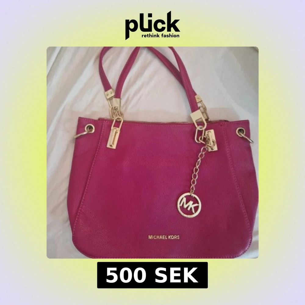 Säljer en snygg rosa axelväska från Michael Kors med guldfärgade metalldetaljer och MK-hänge. Väskan är i skinn och har dubbla handtag samt dragkedja upptill. Perfekt för dig som vill ha en färgklick till outfiten!