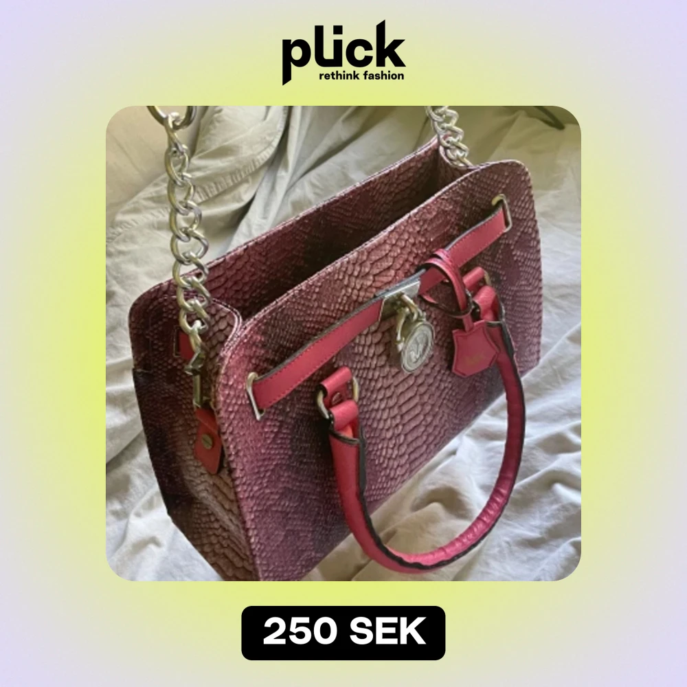 Säljer en supercool rosa MK väska med ormskinnsmönster. Den har en snygg kedja som axelrem och detaljer i silver. Väskan är rymlig och perfekt för både vardag och fest. Den har en dragkedja för säker förvaring.