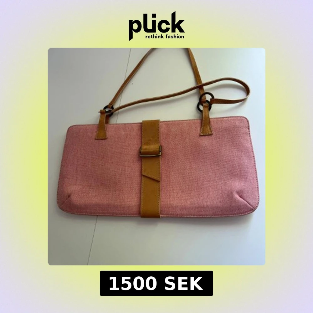 Säljer en snygg rosa axelväska i bomullstyg med ljusbruna detaljer och remmar i skinn. Väskan har en rektangulär form, justerbar axelrem och coolt spänne framtill. Perfekt för dig som vill ha en unik och stilren accessoar. Helt ny