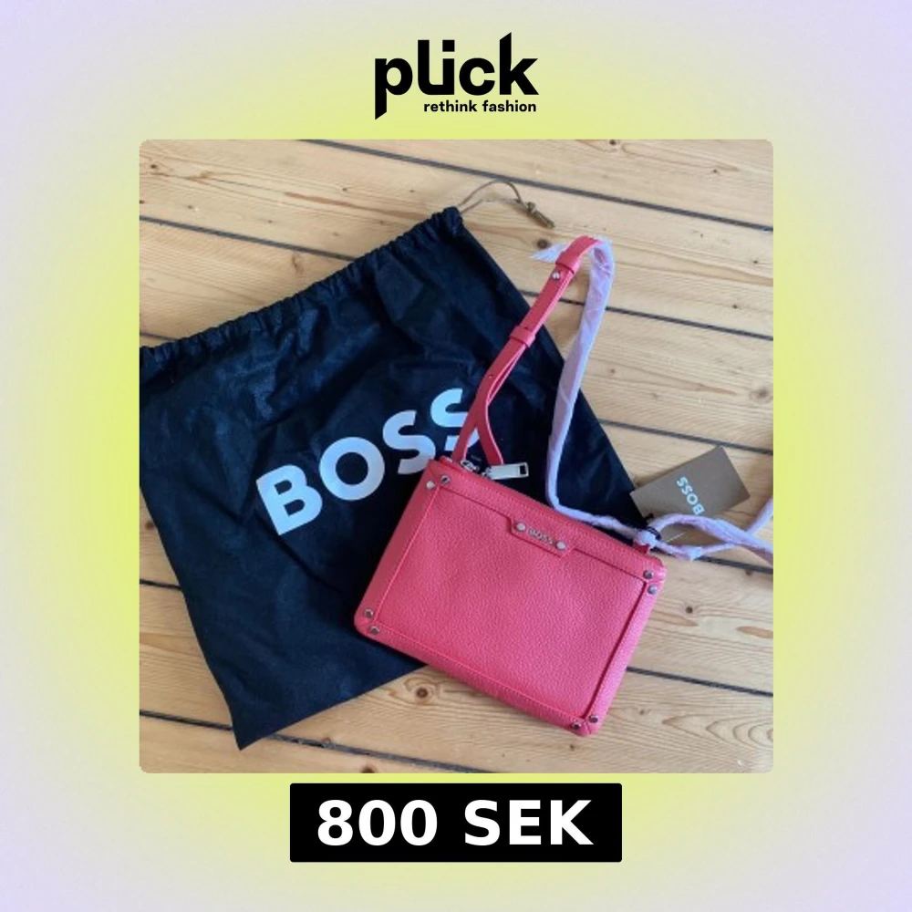 Snygg laxrosa axelväska från BOSS i grained skinn med silverfärgade metalldetaljer och dubbla dragkedjor. Väskan har en stilren, boxig form och justerbar axelrem. Helt ny och oanvänd. Dustbag medföljer. Finns en visningsbild (se sista bilden). Meddela om fler bilder önskas. Köpte den för ca 1000kr.