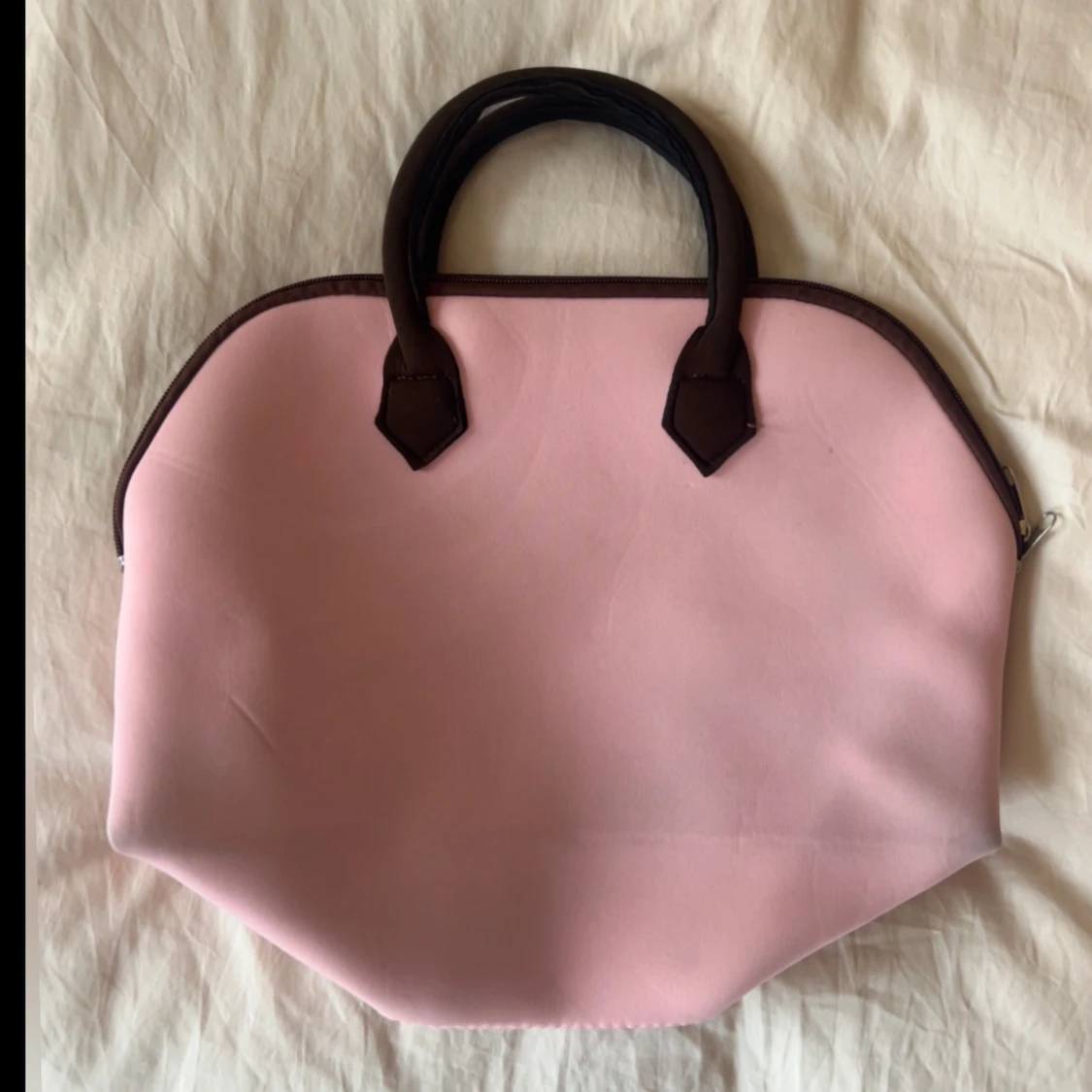 Rosa mjuk väska med brunt handtag 🩷🧸