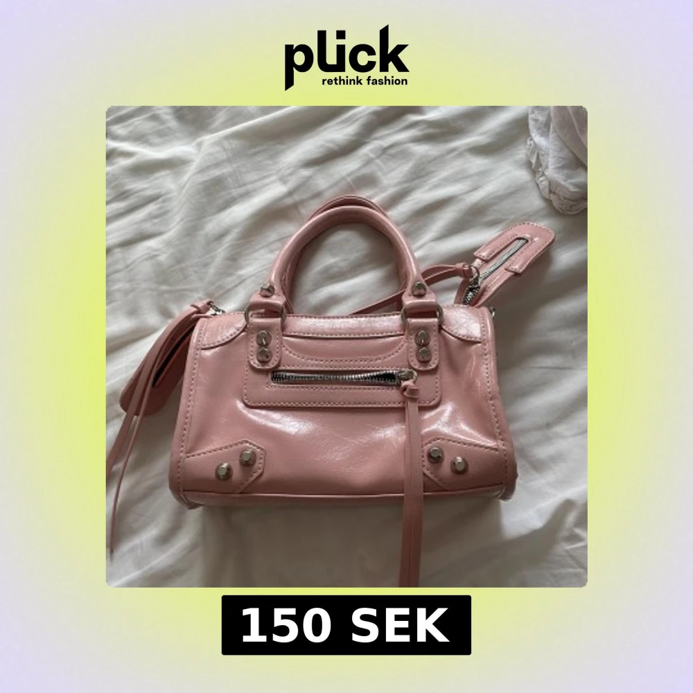 Söt rosa handväska i glansigt skinnimitation med silverfärgade detaljer och dragkedjor. Väskan har både handtag och en lång axelrem, samt dekorativa nitar framtill. Perfekt storlek för det viktigaste och snygg att bära till vardagslooken.