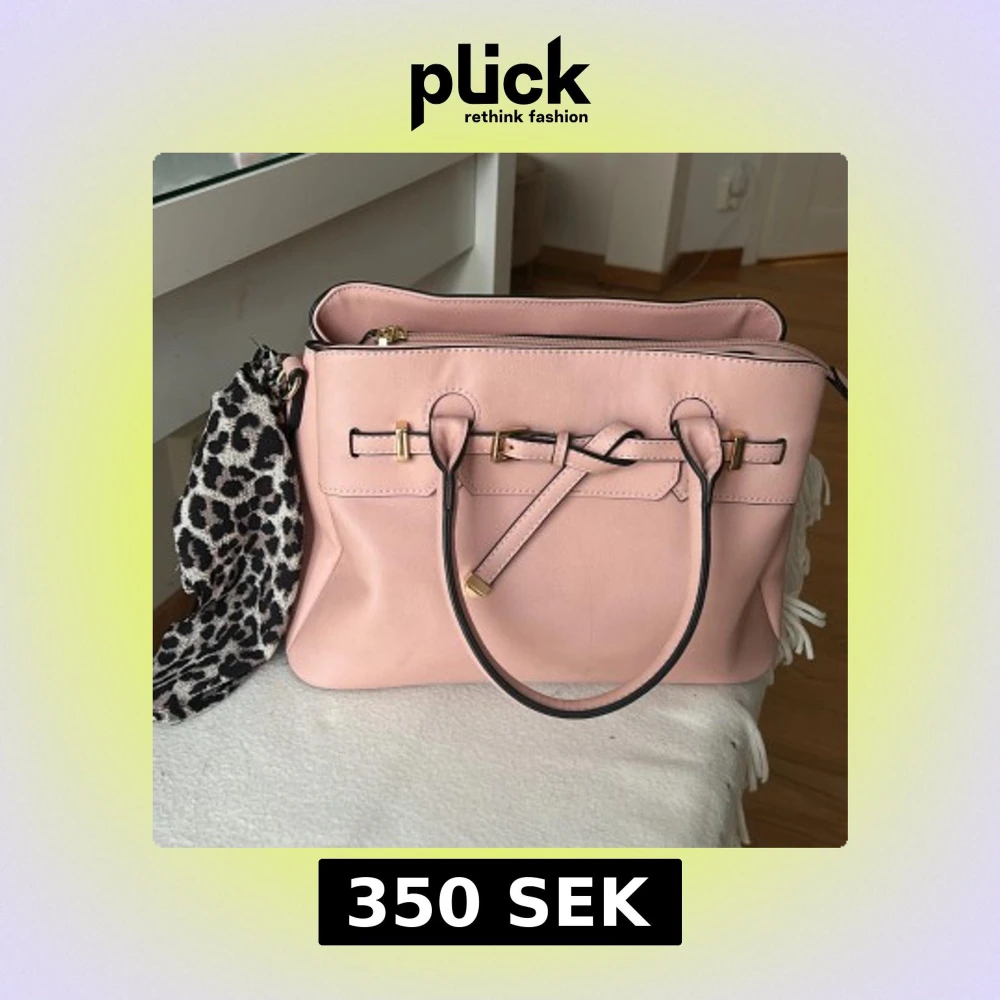 Snygg rosa handväska i syntetmaterial med guldfärgade detaljer och en dekorativ knytning framtill. Skitsnygg men säljer då den ej kommer till användning!💗