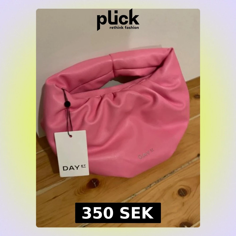 Säljer en superfin rosa axelväska från DAY ET i mjukt syntetmaterial. Väskan har en cool puffig form, dragkedja upptill och ett stilrent DAY ET-logo i silver på framsidan.