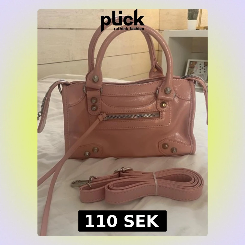 Säljer en snygg rosa handväska i skinn med silverfärgade detaljer och dragkedja framtill. Väskan har både handtag och en avtagbar axelrem, samt ett rymligt innerfack och en mindre ficka med dragkedja. Perfekt för dig som vill ha en stilren och trendig väska. Jag väljer att sälja den då den inte kommer till användning.