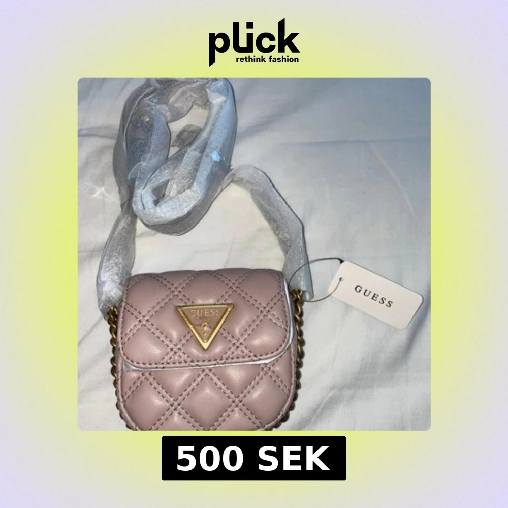 Säljer en söt rosa axelväska från Guess med quiltad design och guldfärgade kedjedetaljer. Väskan har en triangulär Guess-logga i guld på framsidan och en justerbar axelrem. Helt ny