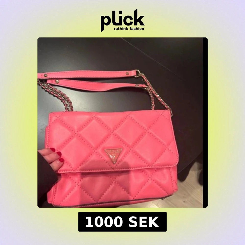 Snygg rosa axelväska från Guess med quiltad design och kedjedetaljer på axelremmen. Väskan har en praktisk dragkedja inuti och stängs med tryckknappar. Perfekt för att ge en färgklick till din outfit! Säljs för den inte kommer till användning, nypris ca 2 000kr säljes för 1000kr