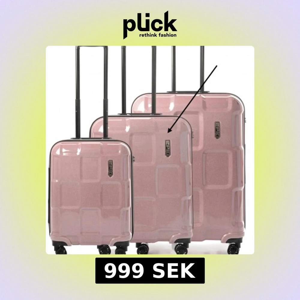 Säljer en snygg rosa resväska från Epic med glittrig finish och hårt skal. Väskan har fyra hjul, teleskophandtag och inbyggt TSA-lås. Perfekt storlek som kabinväska och riktigt smidig att rulla runt på resan. Mått: 66x46x25cm Nypris: 2599kr Använd under 2 resor, inköpt 2022.