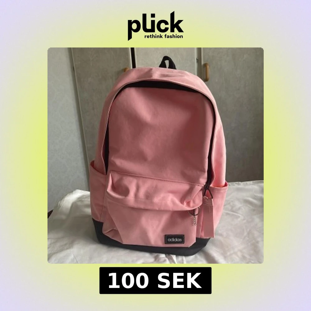 Snygg rosa ryggsäck från Adidas med svart botten och detaljer. Väskan har ett stort huvudfack, framficka med dragkedja och två sidofickor. Justerbara axelremmar och klassisk Adidas-logga framtill. Perfekt för skola eller cityhäng.