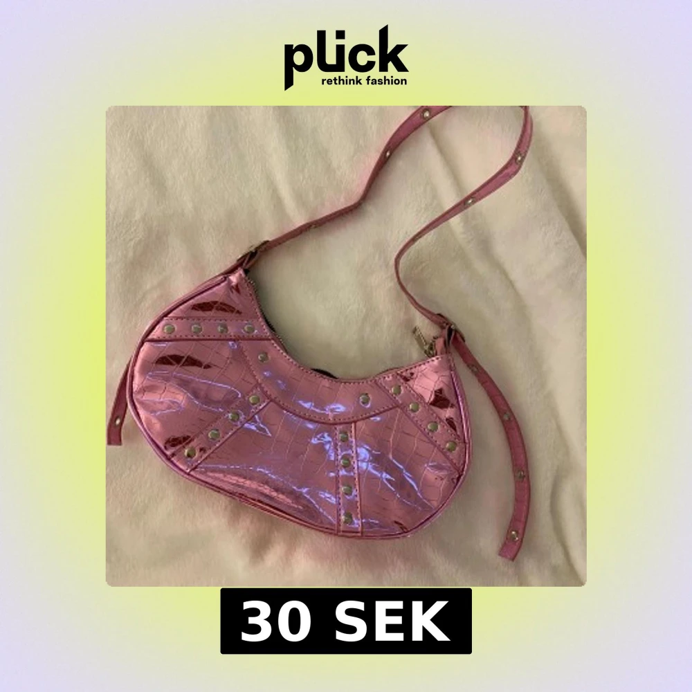 Rosa väska, sticker ut från andra eftersom den är speciell, bandet går att göra längre och kortare beroende på vad man föredrar.