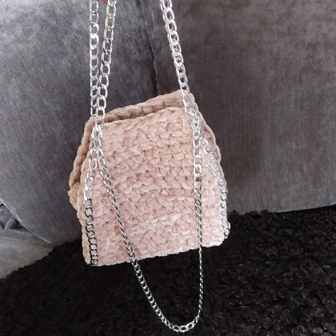 Snygg rosa väska med en stilren silverfärgad kedja. Perfekt för att ge din outfit en unik touch. Väskan har en mjuk och mysig textur.