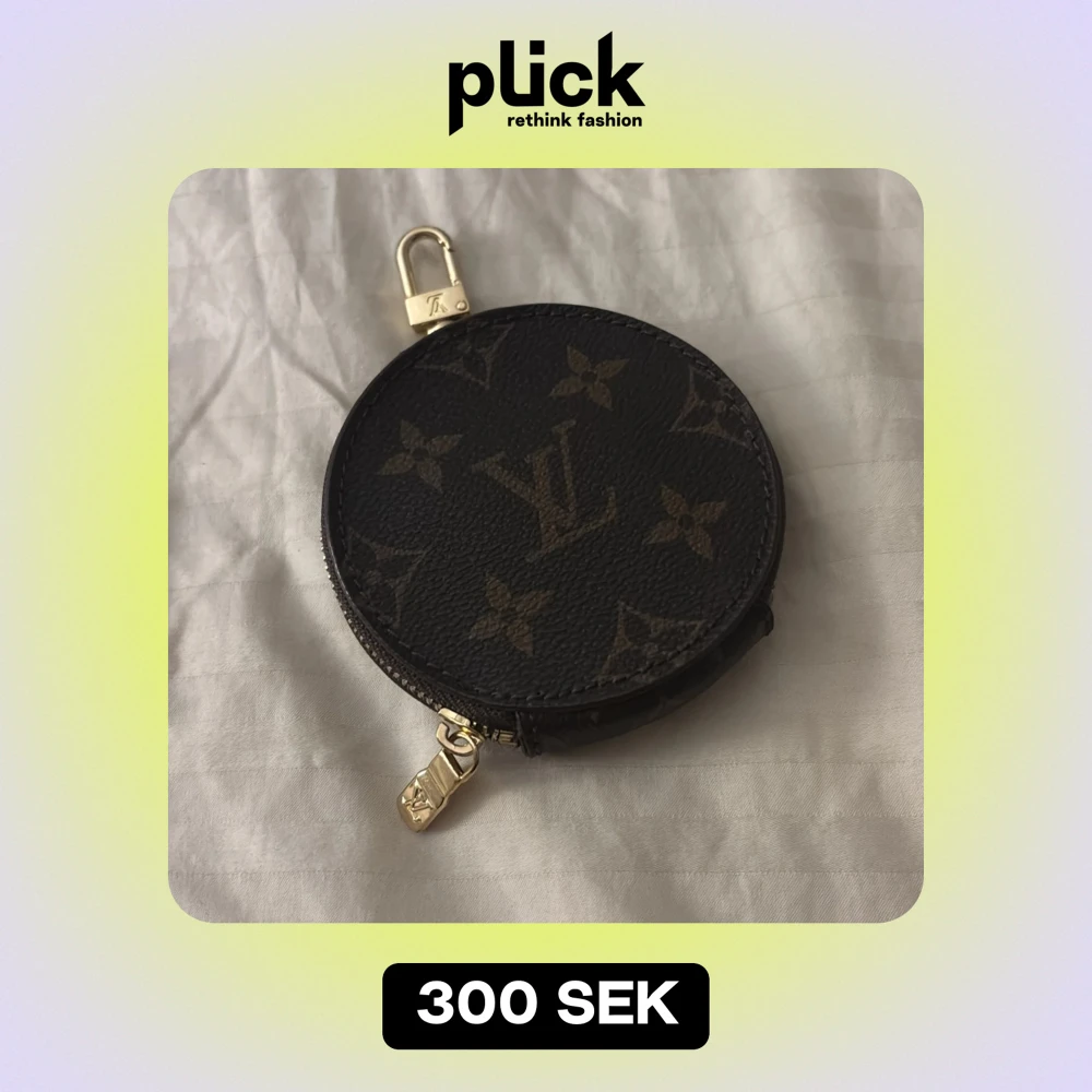 Säljer en superfin rund plånbok i klassiskt monogrammönster. Den är i mörkbrunt skinn med guldfärgade detaljer och dragkedja. Perfekt för att hålla småsaker eller mynt. Den har en praktisk karbinhake för att fästa i väskan. 👜✨