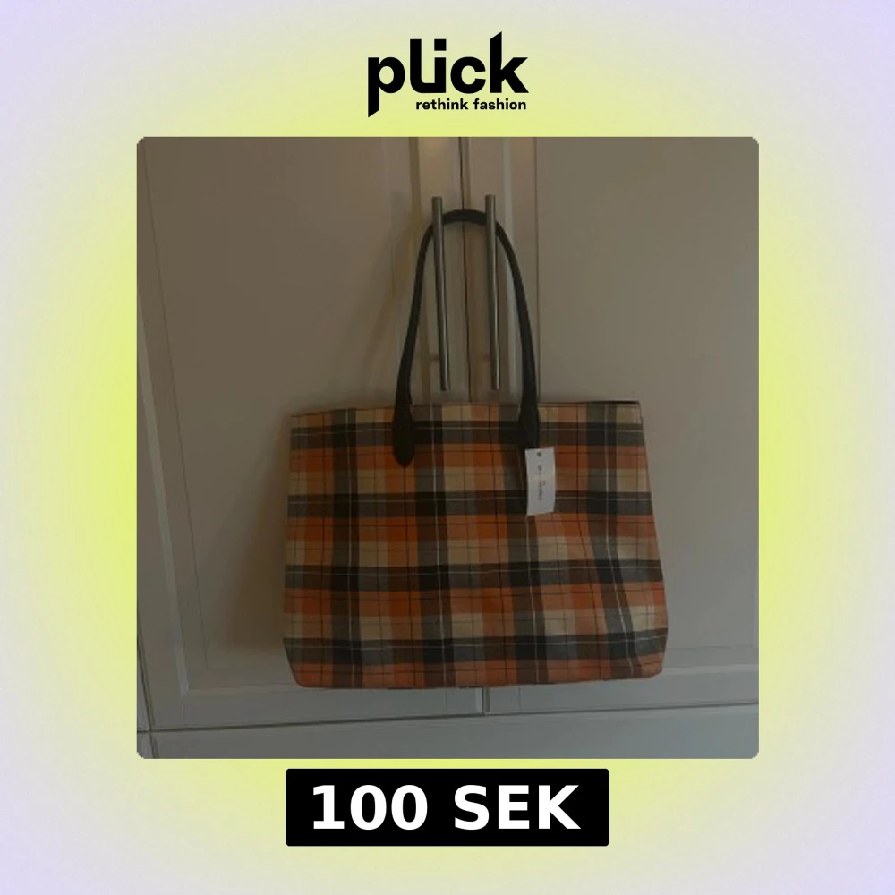 Snygg och rymlig shoppingväska med ett klassiskt rutigt mönster i orange, beige och svart.
