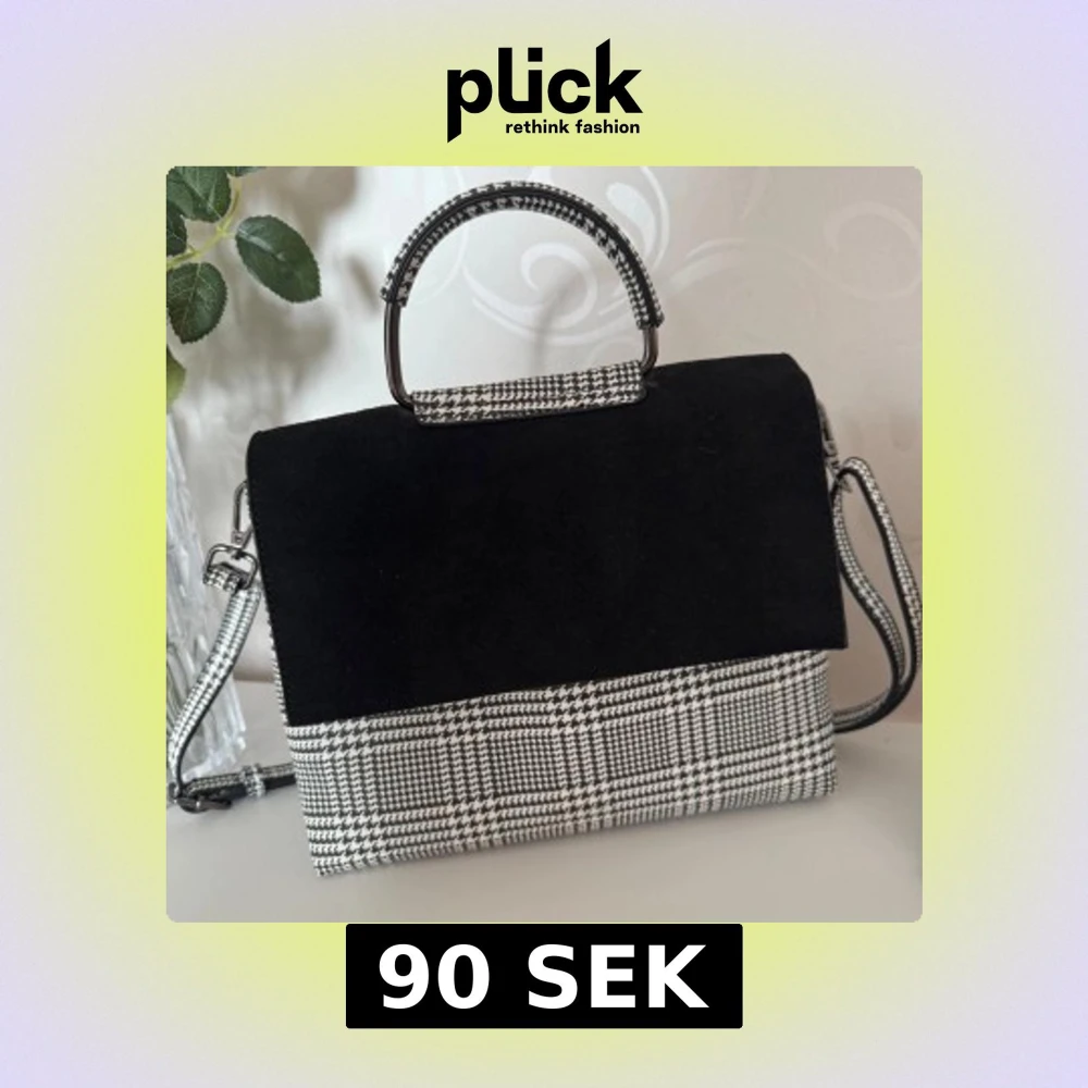 Snygg handväska med svart ovandel och rutigt mönster. Väskan har ett handtag och en avtagbar axelrem samt flera fack 🤍