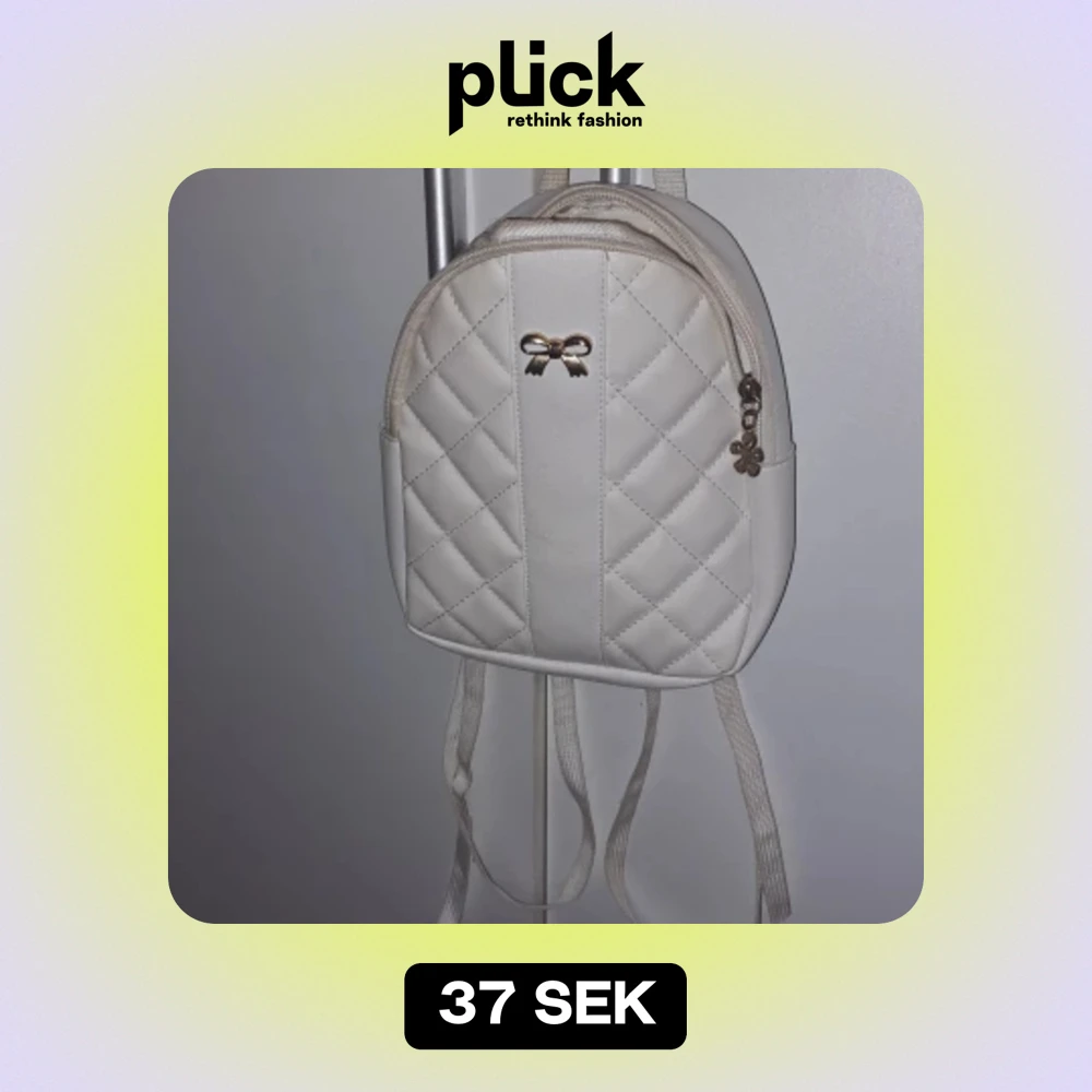 En jättegullig liten vit ryggsäck med en liten söt rosett