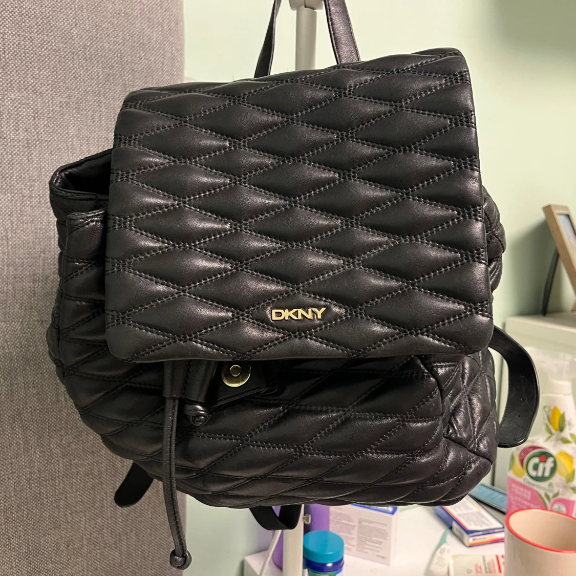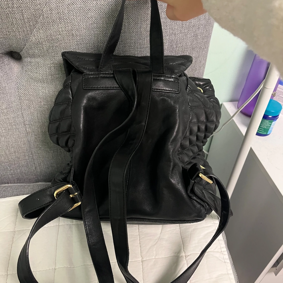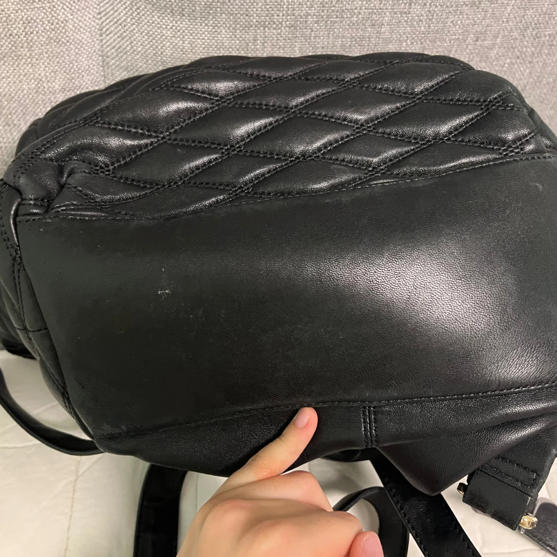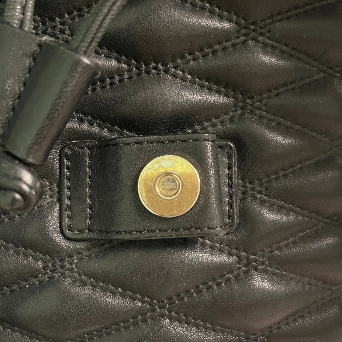 Jätte fin med äkta skinn, färgen som man ser på sista bilden har gått bort lite på knappen, inget som syns när den är stängd.