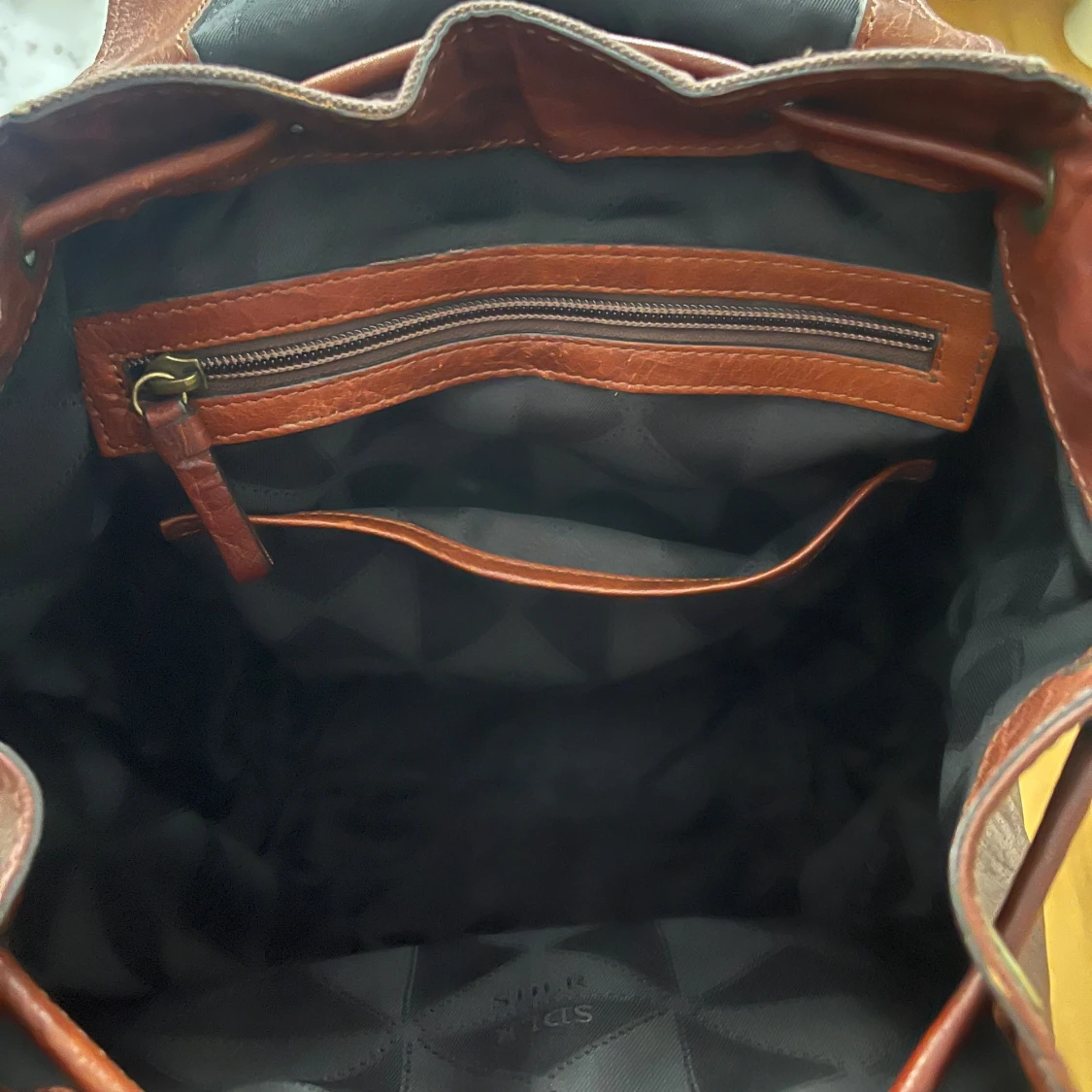 Snygg brun ryggsäck från SDLR i äkta skinn med detaljer i canvas. Väskan har dragskostängning, innerfack med dragkedja och justerbara axelremmar. Perfekt för dig som vill ha en stilren och praktisk väska med klassisk look.