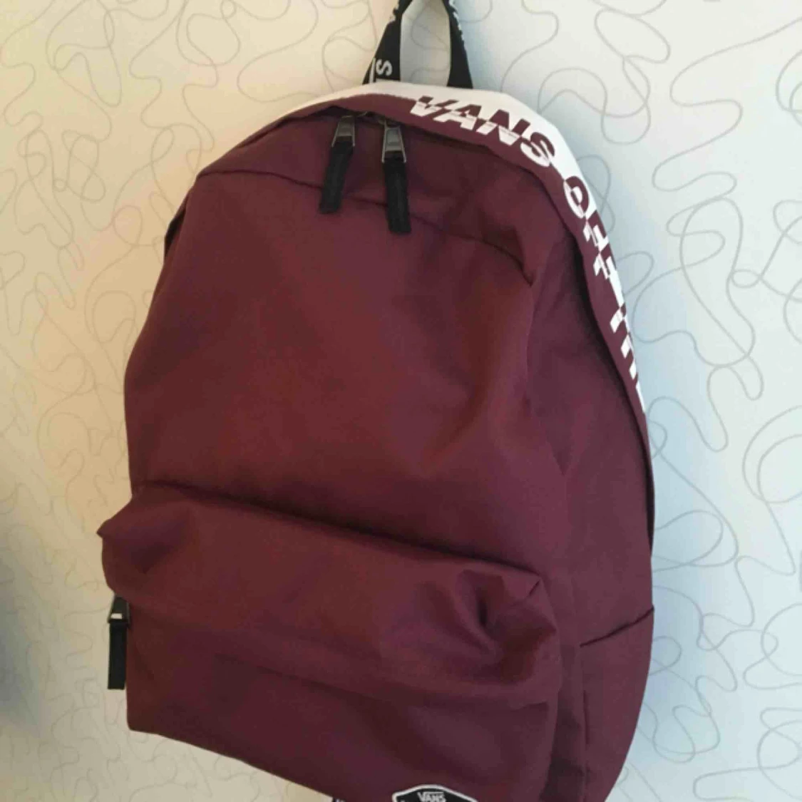 Vinröd och vit ryggsäck från vans, köpte i höstas och inte direkt använd
