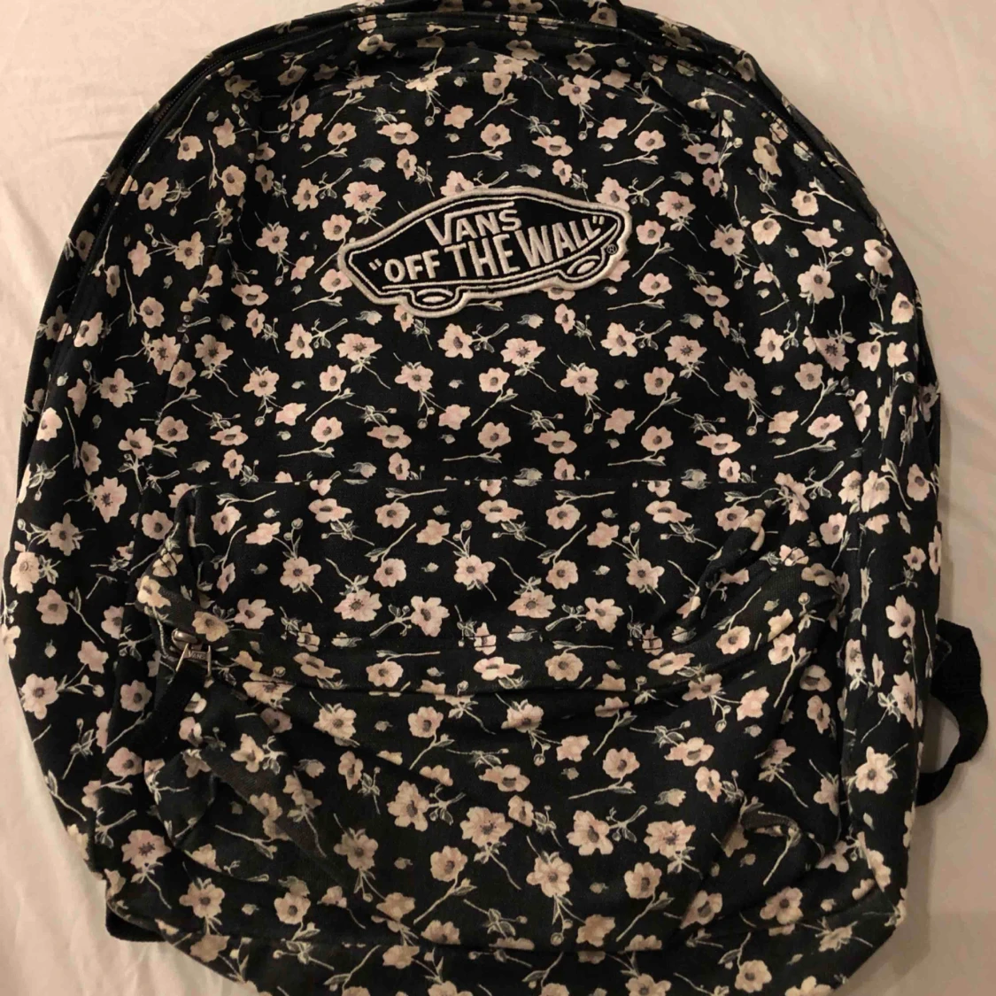 En fin vans ryggsäck som är svart med ett blommigt mönster i tyg! Finns ett stort fack och ett mindre! Justerbara axelband, den är i fint skick och sparsamt använd