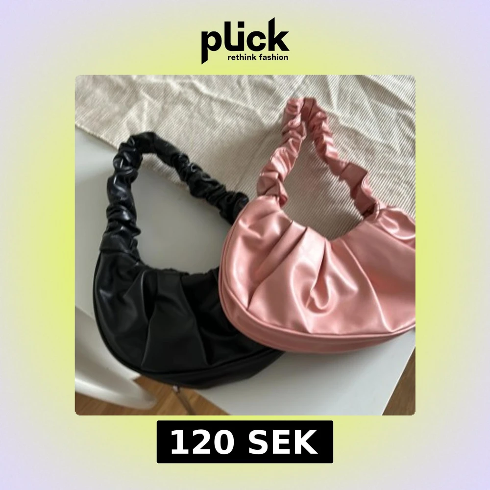 Två trendiga axelväskor med rynkat axelband, en i ljusrosa och en i svart. Väskorna har en mjuk, rundad form och är tillverkade i ett slätt syntetmaterial som ger en modern look. Perfekt accessoar för att lyfta din outfit. Båda för 120 eller bud