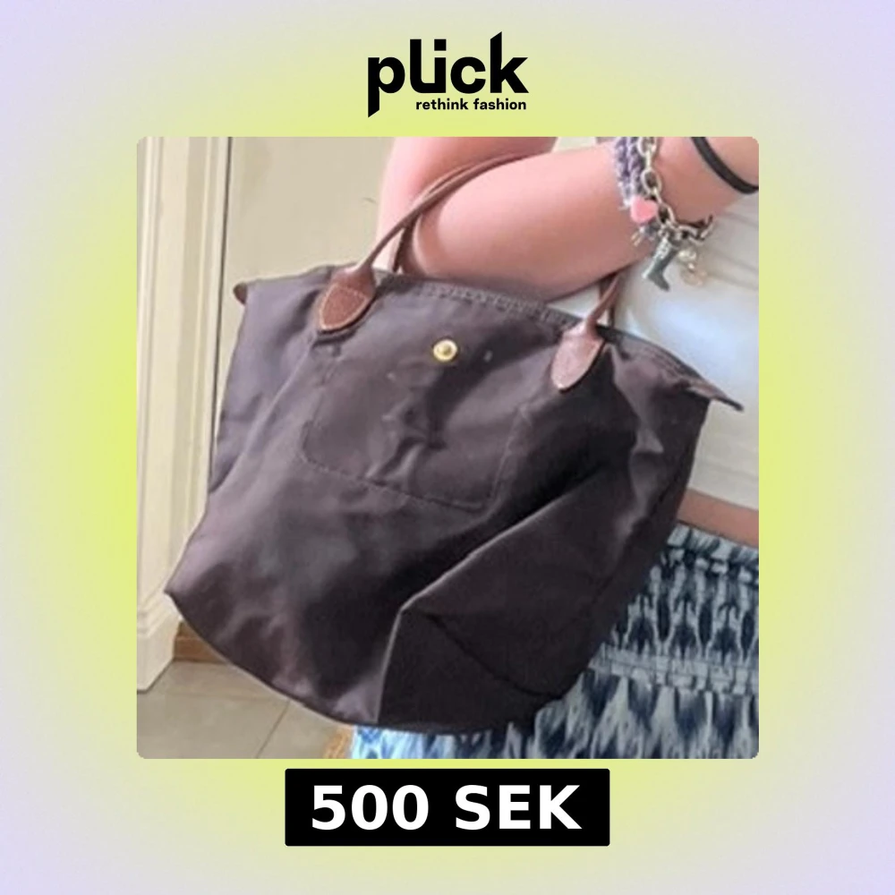 Säljer en klassisk brun handväska från Longchamp med bruna skinnhandtag och lock. Väskan är tillverkad i slitstark nylon och har guldiga metalldetaljer. Perfekt storlek för vardagens alla grejer och enkel att matcha med olika outfits. Den får plats med förvånande mycket.