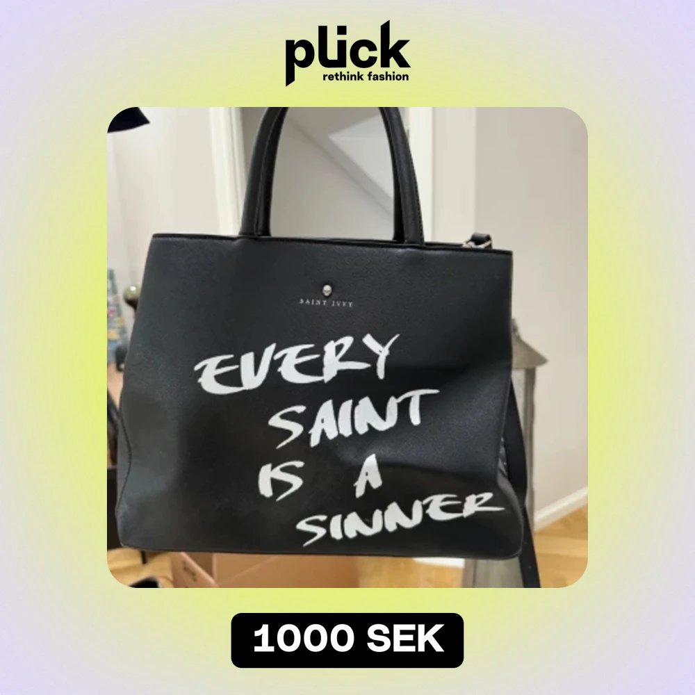 Så snygg Saint Ivy väska med text ”every saint is a sinner”. Köpt för 2400kr.