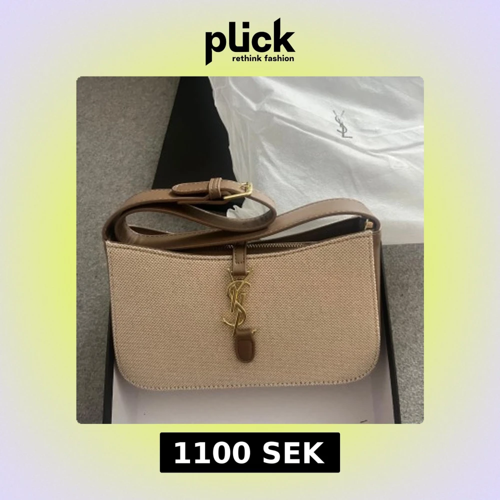 Snygg beige axelväska från Saint Laurent med klassisk YSL-logga i guld framtill. Väskan är i canvas med detaljer och rem i ljusbrunt skinn. Den har dragkedja upptill och justerbar axelrem. Perfekt storlek för det viktigaste och en riktigt stilren look. Aldrig använd. Box och dustbag medföljer. Har inget äktehetsbevis, därav priset❤️