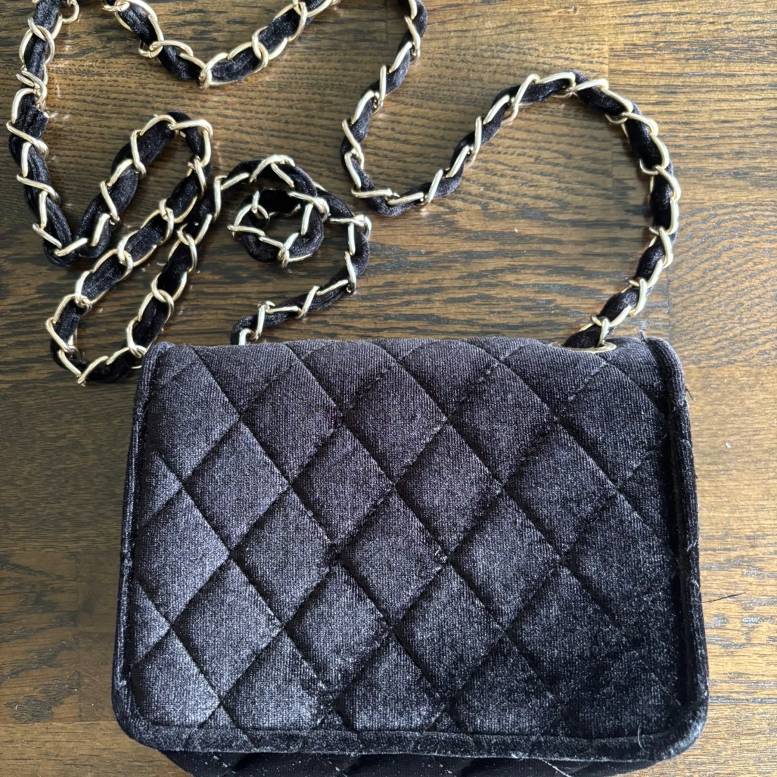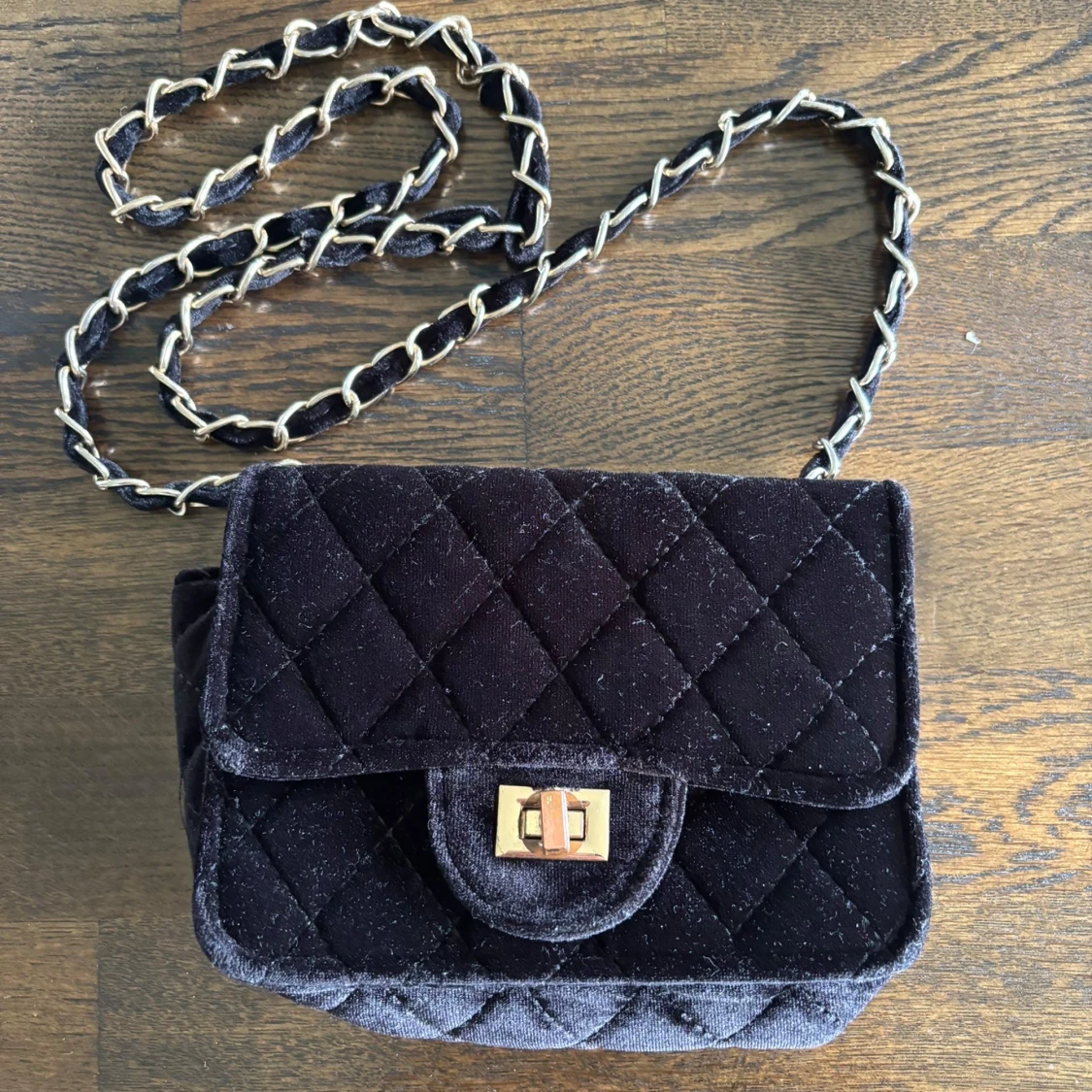 säljer den här svarta axelväskan med gulddetaljer. väskan stängs med ett ”magnetspänne”. väskan är i sammet och ger en väldigt lyxig känsla! köptes för ett par år sedan för ca 250kr. osäker vart den är köpt, men jag tror den är från glitter. kom privat för frågor💓