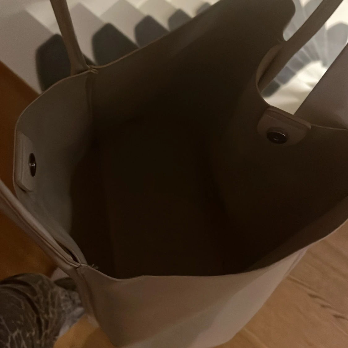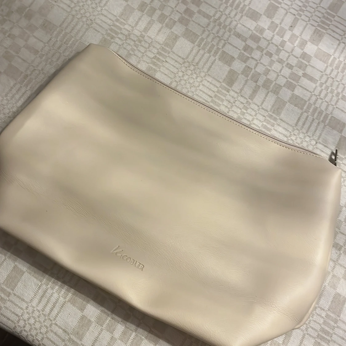 Snygg och rymlig beige axelväska med ett extra fack framtill. Väskan har några små märken men syns knappt om man inte kolla noga. På bild nummer 5 är de ett fack man kan lägga i väskan om men inte vill ha de stora utrymmet. Skriv om du har funderingar eller vill få fler bilder🩷🩷
