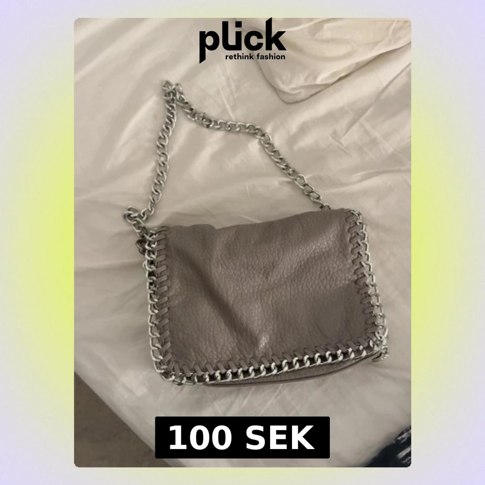 Säljer en snygg grå axelväska med grov silverkedja som axelrem och detaljer längs kanterna. Använd några gånger 🥰